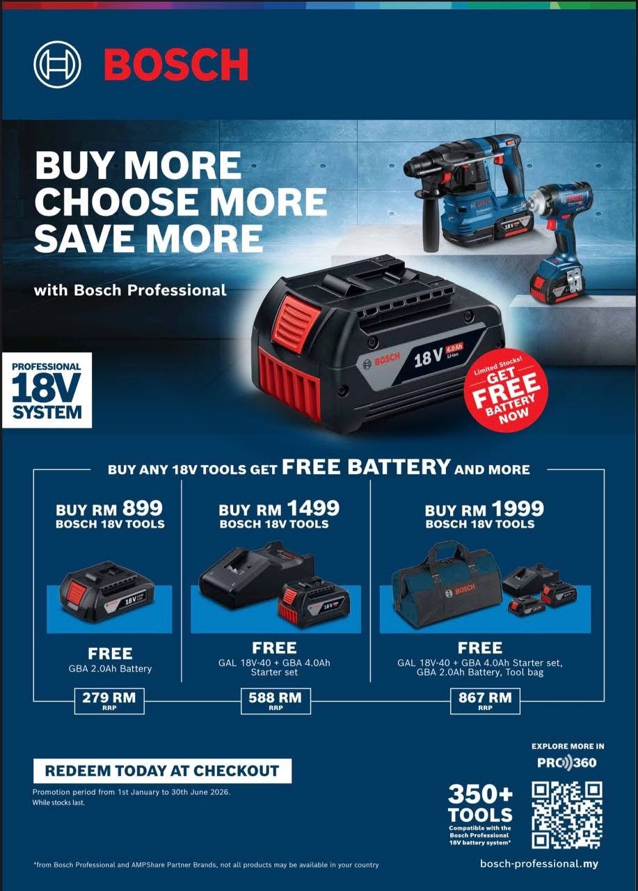 Great news for professionals and power tool enthusiasts across Malaysia! Geo Laser (M) Sdn Bhd is excited to announce the latest Bosch Professional promotion: "BUY MORE CHOOSE MORE SAVE MORE".
